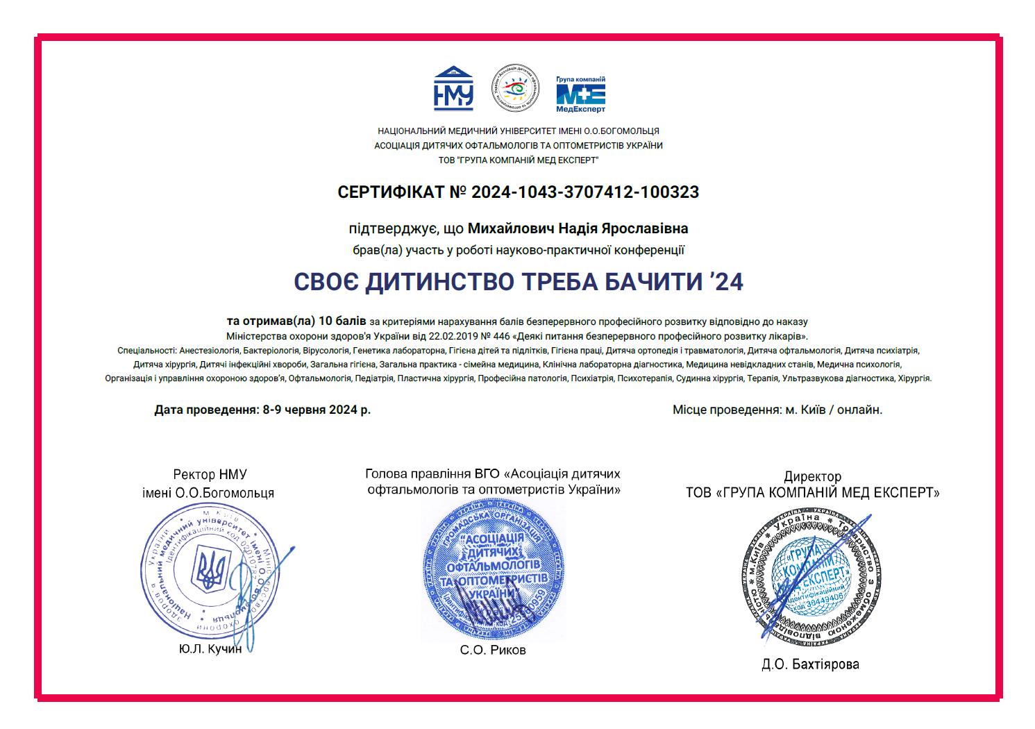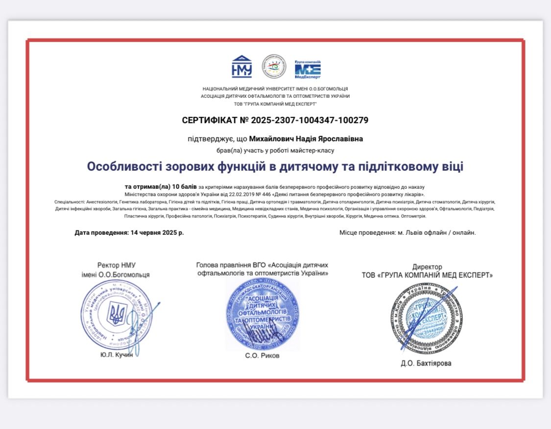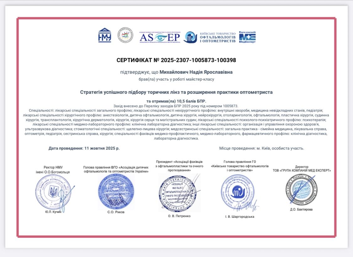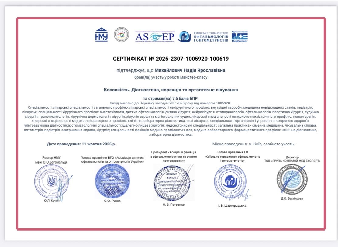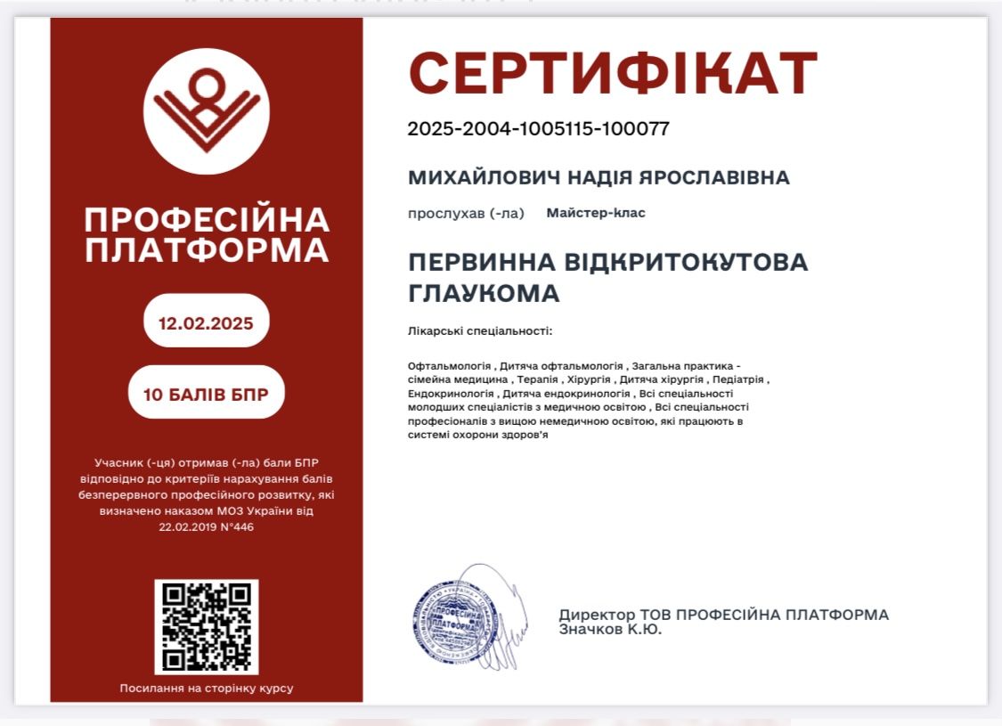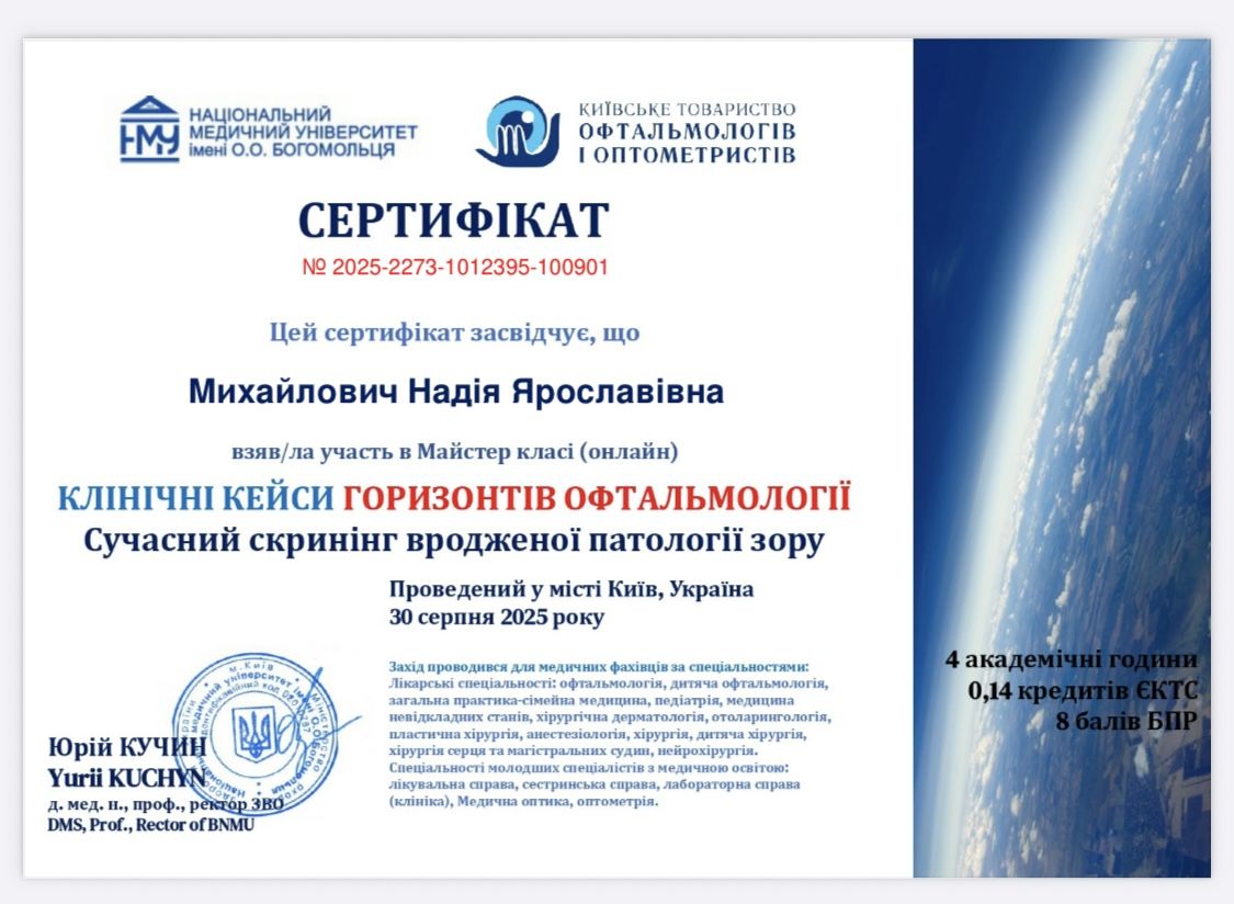 4. спеціалізація “Дитяча офтальмологія» в «Запорізькій медичній академії післядипломної освіти»
